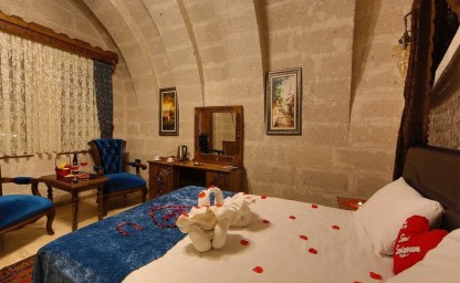 Balayı çiftleri için özel olarak tasarlanmış Suite Stone odamızda 3 gece 4 gündüz konaklama ve Kapadokya’yı baştan sona keşfedebileceğiniz gezi turlarının da yer aldığı Kapadokya Balayı Paketi.